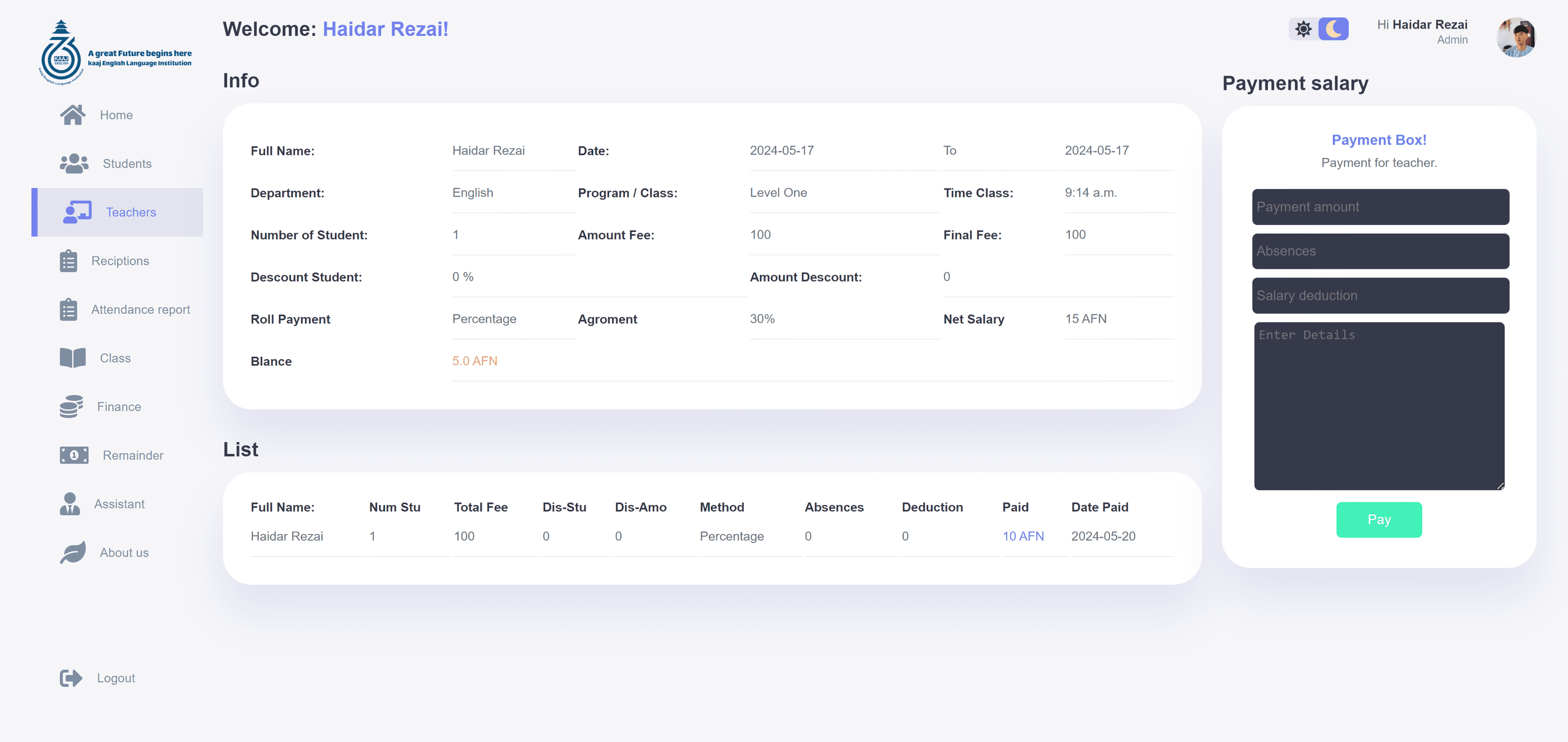 Penalty and Reward Management: Track and manage penalties and rewards for teachers.